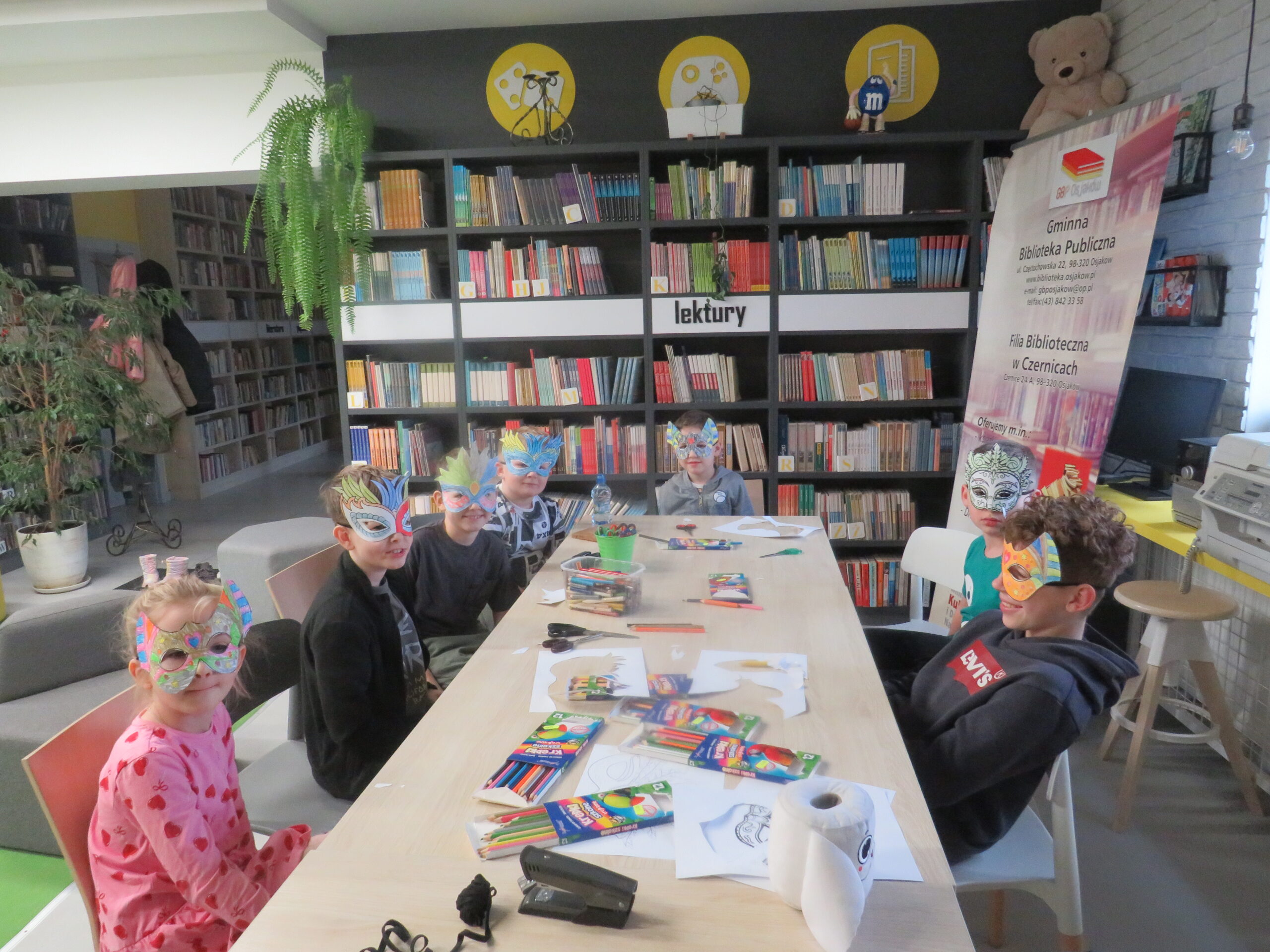 Zajęcia rozpoczęły się od przeczytania fragmentów książki pt: „Wielki letni bal”. Celem zajęć było wyjaśnienie dzieciom pojęcia „karnawał” oraz zapoznanie dzieci ze zwyczajem organizowania i przebierania się na bal karnawałowy. Uczestnicy zajęć nabrali wiary we własne siły i możliwości twórcze wykonując niepowtarzalne maski karnawałowe. Serdecznie dziękujemy za udział w zajęciach.