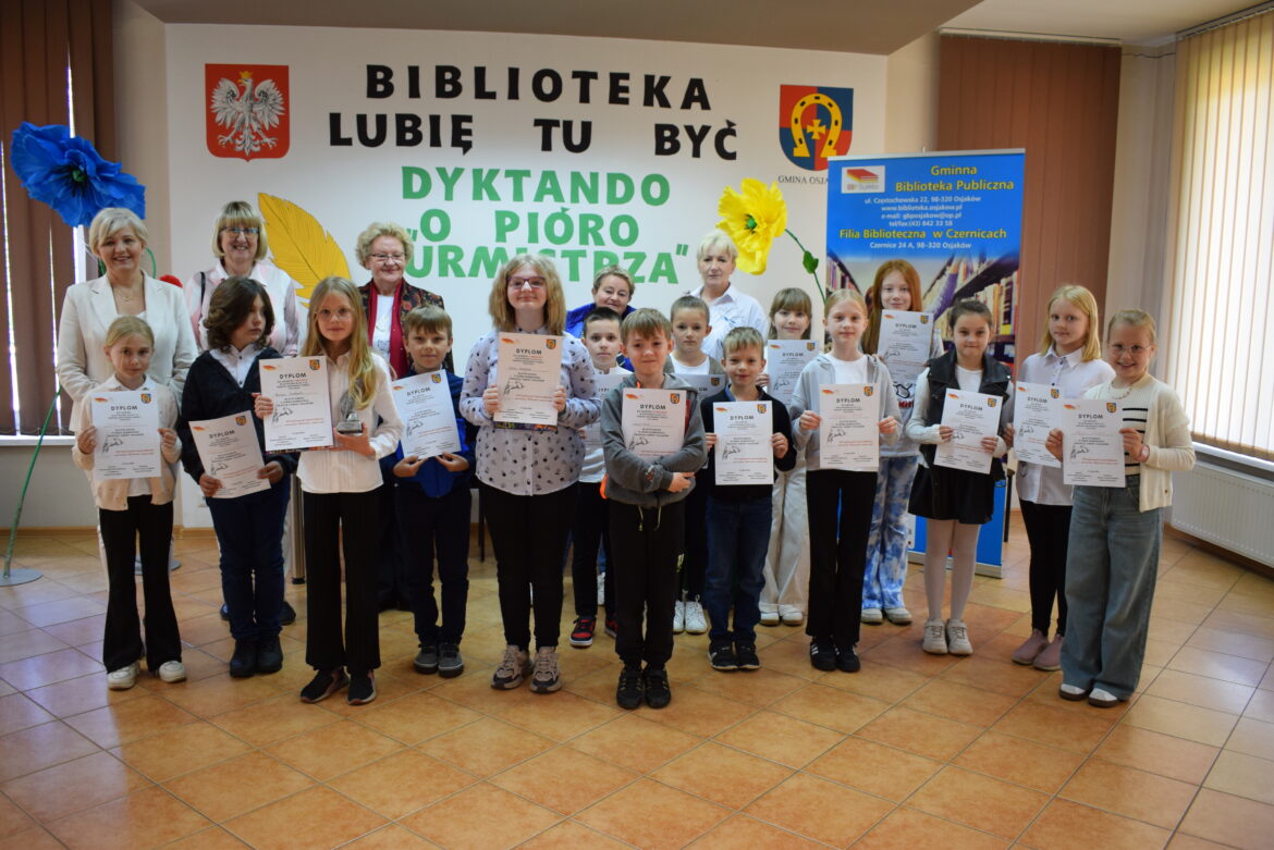 Laureaci dyktanda ortograficznego dla dorosłych o „Pióro Burmistrza Miasta i Gminy Osjaków” w kategorii Open to osoby, które wykazały się wyjątkową biegłością w posługiwaniu się językiem polskim. Konkurs ten ma na celu promowanie poprawności językowej oraz zwiększanie świadomości ortograficznej wśród mieszkańców gminy. W tegorocznej edycji, która odbyła się w bibliotece, udział wzięło piętnastu uczestników, z czego najlepsi otrzymali dyplomy oraz pióro z dedykacją od Burmistrza Miasta i Gminy Osjaków Pani Renaty Kostrzyckiej.